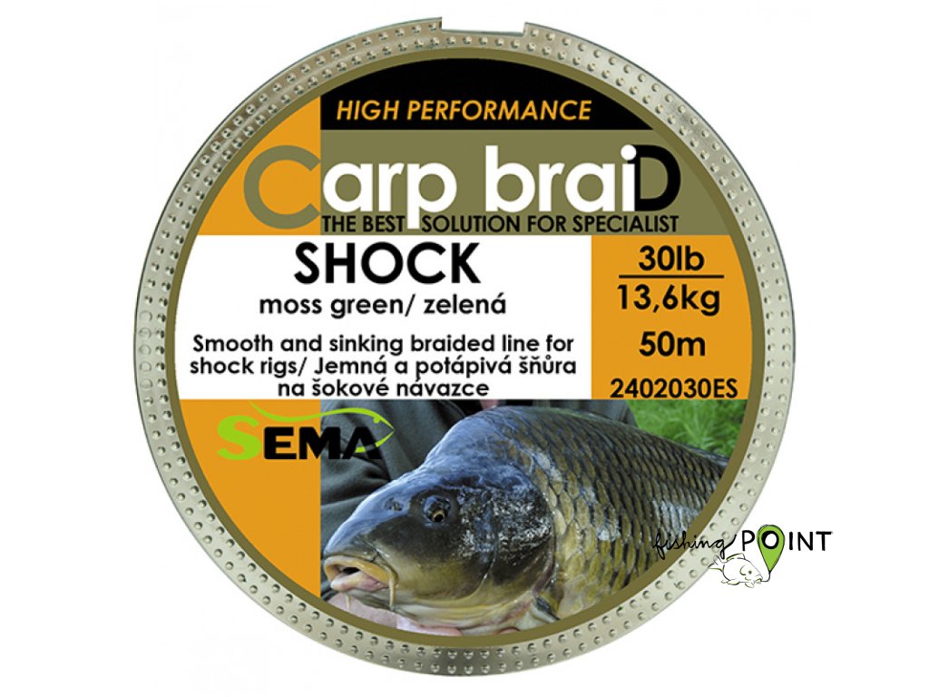 Shock je velmi jemná, potápivá zelená šňůra na tvorbu šokových návazců. Na kmenový vlasec navažte Shock v délce dvou délek prutu. Docílíte tím pak delších odhozů.