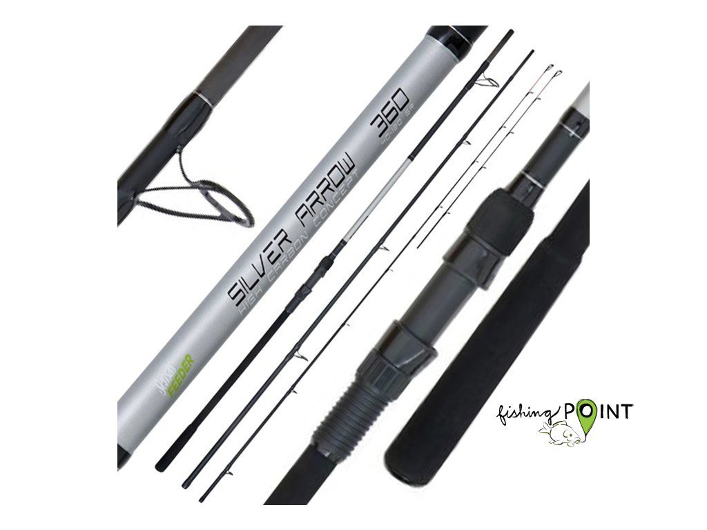 Feedery se štíhlým blankem, ale pevným blankem. Jsou vyrobeny z HMC G2 uhlíku a osazeny SIC očky. Elegantní ergonomická rukojeť s horním šroupením navijáku pro dokonalý vzhled. Pruty Silver Arrow jsou určené pro lov kaprů a jiných větších ryb. Mají tužší páteř. Díky tomu bez problémů zvládnou lov ve větších vzdálenostech i zdolávání velkých ryb. Všechny modely mají 2 špičky.Silver Arrow 11FT M: délka 330 cm, vrhací zátěž do 25-75 g, počet dílů 3+2 špičky, váha 197 g, skladná délka 115 cm.