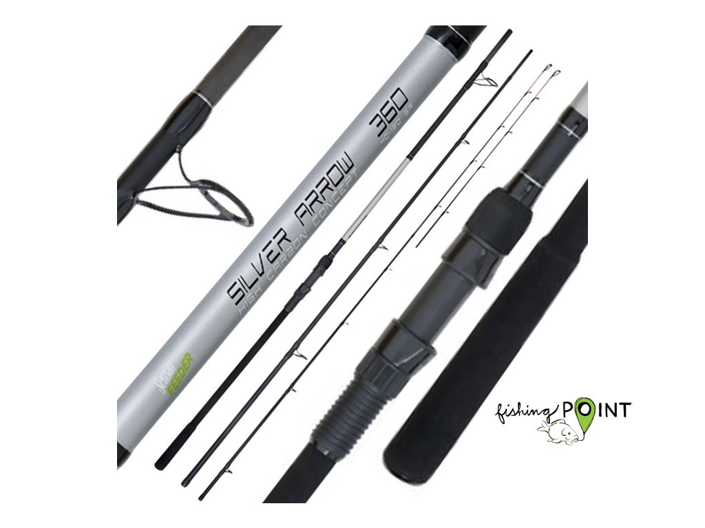 Feedery se štíhlým blankem, ale pevným blankem. Jsou vyrobeny z HMC G2 uhlíku a osazeny SIC očky. Elegantní ergonomická rukojeť s horním šroupením navijáku pro dokonalý vzhled. Pruty Silver Arrow jsou určené pro lov kaprů a jiných větších ryb. Mají tužší páteř. Díky tomu bez problémů zvládnou lov ve větších vzdálenostech i zdolávání velkých ryb. Všechny modely mají 2 špičky. Silver Arrow 12FT MH: délka 360 cm, vrhací zátěž do 30-80 g, počet dílů 3+2 špičky, váha 267 g, skladná délka 125 cm.Doplňkové parametry