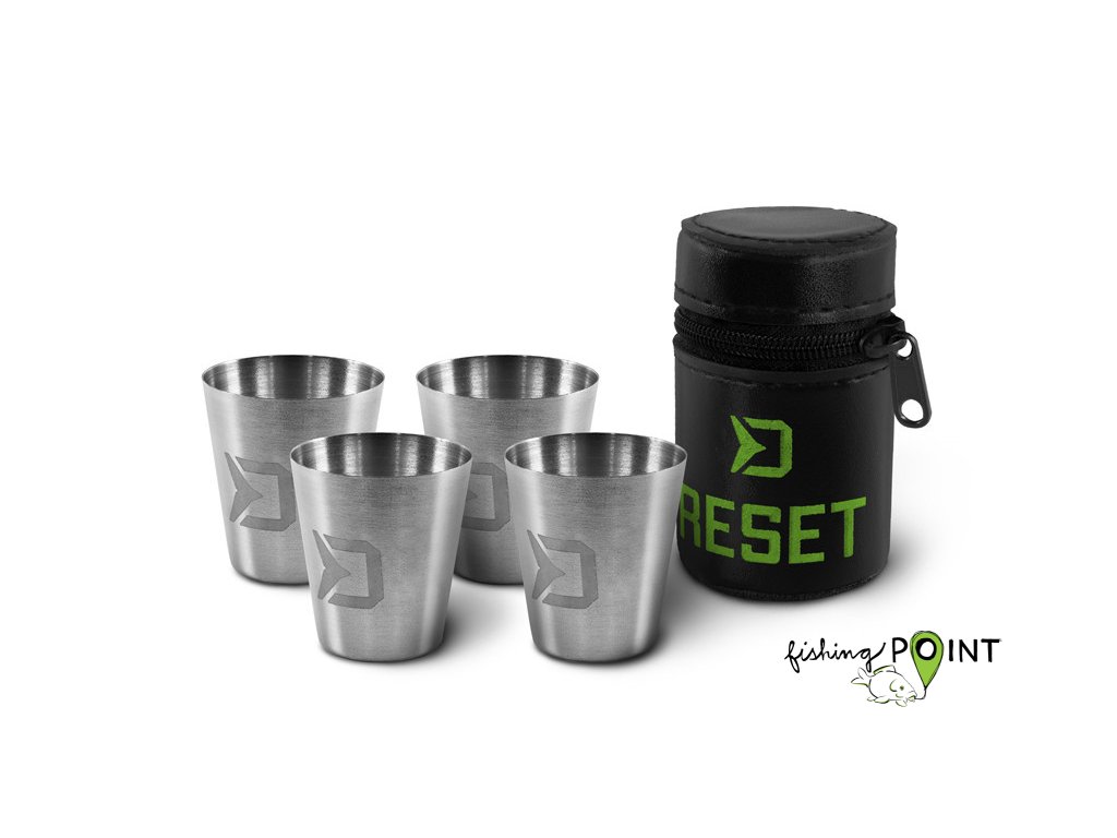Vyměňte své nepraktické skleněné pohárky za kompaktní nerozbitný set v praktickém a pěkném balení. Cestovní sada RESET se skládá z jednoho praktického koženkového obalu a čtyř nerezových pohárků o objemu 30ml. Samozřejmě set není určen pouze pro rybáře, ale díky svému praktickému balení potěší turisty, myslivce, nebo se výborně hodí na chatu.