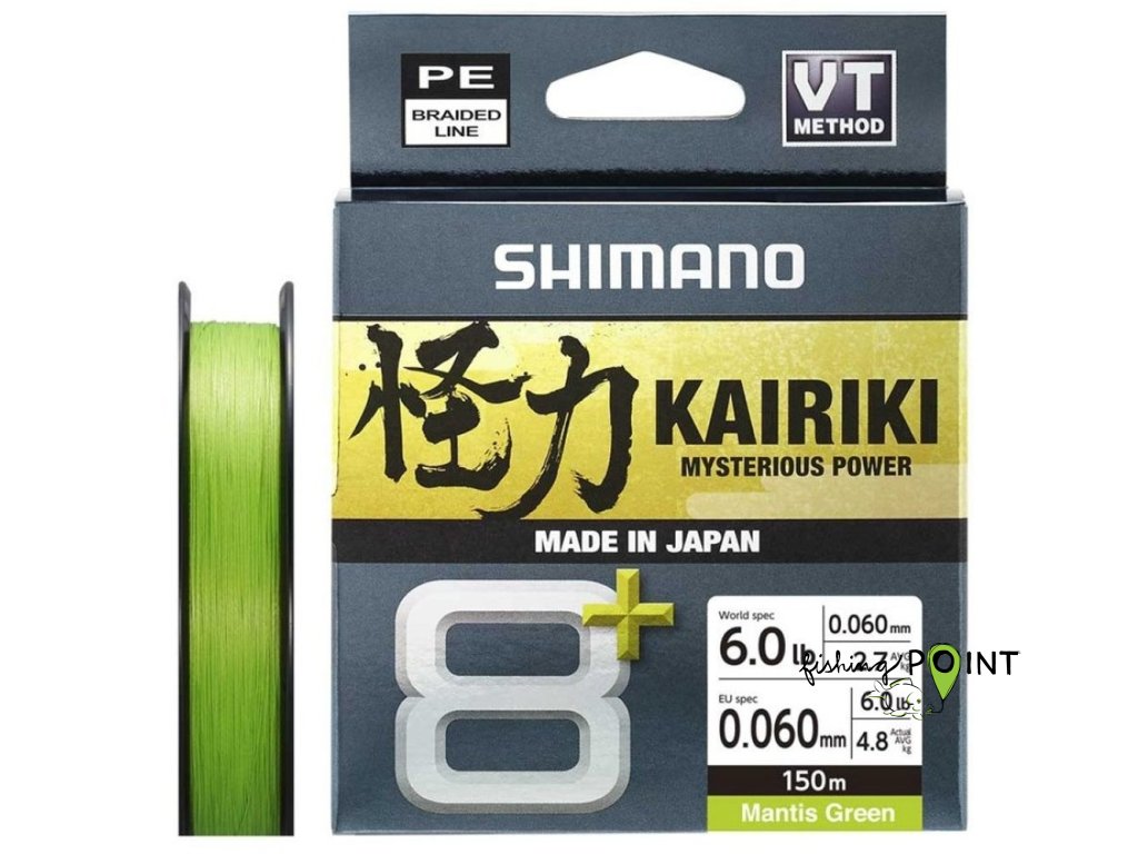 Shimano Pletená šňůra Kairiki 8+ Mantis Green 0,16mm 11,1kg 150m