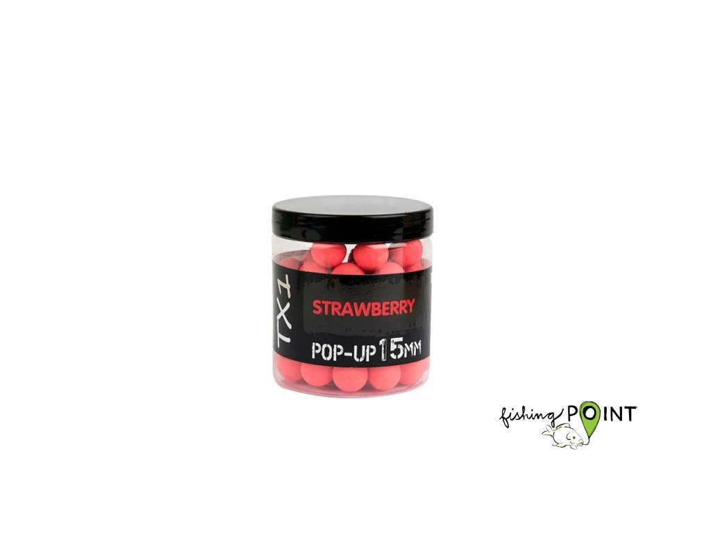 TX1 Pop-ups jsou perfektní návnady na háček pro použití s boilies TX1, pokud chcete návnadu na háček nebo kriticky vyváženou nástrahu. S řadou příchutí doplňujících řadu TX1 Boilie tyto vysoce vizuální návnady také dobře fungují jako návnady na jeden háček nebo se zig návazci. Nabízejí vynikající vztlak a únik chuti a jsou k dispozici ve velikostech 12 mm a 15 mm, které vám nabízejí všestrannost použití jedné nebo dvou návnad jako návnady na háček.Pop-up TX1, dostupný v pěti klasických příchutích pro chytání ryb, má něco, co pokryje všechny vaše preference ohledně návnady. Pokud dáváte přednost návnadám z rybí moučky, mají silné aroma Squid and Octopus ("smytá" růžová barva) a Monster Crab (oranžová barva). Banana and Ananas má jasně žlutou barvu, která je skvělá pro jednoduché návnady a zig návazce, zatímco Strawberry je jasně viditelná jasně červená. Tygří ořech má bílou barvu, která funguje opravdu dobře na tvrdých vodách, kde se často používá boilie.