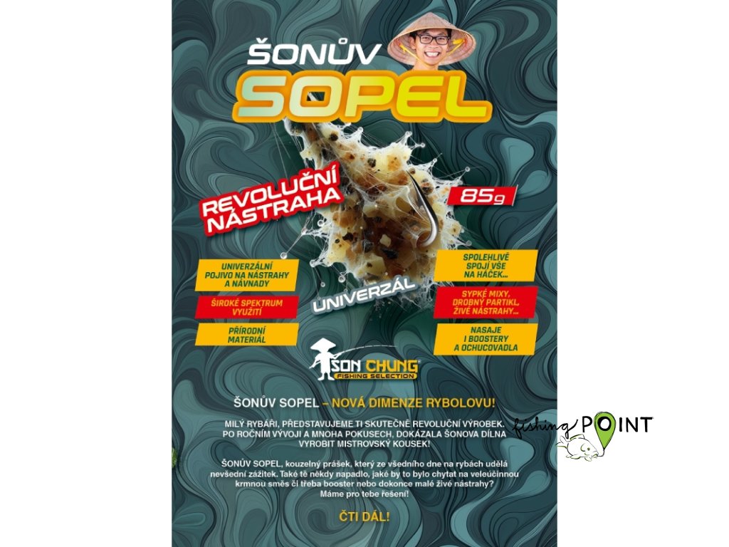 Šonův Sopel – revoluční nástrahaObjevte novou dimenzi rybolovu s Šonovým Soplem – inovativním práškem, který promění běžný den u vody v neobyčejný zážitek. Po roce vývoje a testování přichází mistrovský produkt, který umožňuje vytvářet nejen dokonalé nástrahy, ale i návnady.