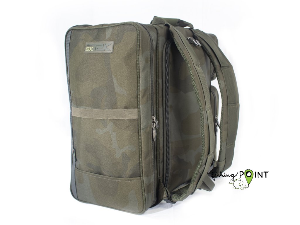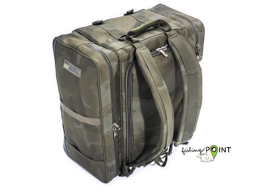 Skvělý kousek multifunkčního zavazadla - batoh, cestovní taška nebo taška na vozík. To vše v jednom. Je vyroben z vysoce odolného ale stylového SK-TEK camo materiálu. Stěny jsou vyztuženy a zesíleny, aby byl zajištěn pohodlný přístup k uloženému vybavení. Prostory v postranních kapsách jsou uzpůsobeny maximálnímu využití a pojmou Sonik Accessory Bags. Díky snadno uchopitelným rukojetím a nízkoprofilovému designu jej lze snadno uložit pod lehátko a ušetřit tak místo v bivaku či brolly. Pomocí úchytů k batohu snadno připnete další rybářské vybavení, jako např. židli nebo podložku. Po stranách můžete rovněž uložit vidličky, abyste je měli hned po ruce. Všecnny zvlášť namáhané oblastí jsou navíc zesíleny pro zajištění dlouhé životnosti. Vlastnosti: • Vyztužené a zesílené stěny • 2 vnitřní síťované kapsy • HD 600D PVC potažený SK-TEK camo materiál • Vysoce odolná, voděodolná základna • Polstrované popruhy s hrudním pásem • 2 postranní rukojeti • Prostory v postranních kapsách jsou uzpůsobeny maximálnímu využití • Nízko profilový desihn pro snadné uložení pod lehátko • Úchyty pro připevnění dalšího rybářského vybavení • Rozměry: 48 x 25 x 50cmDoplňkové parametry