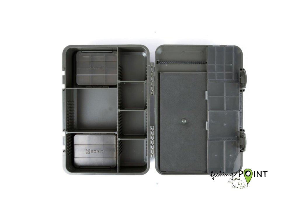 LOKBOX™ MEDIUM BOX je krabička pro kompletní skladování drobné bižuterie a návazců. Je navržena tak, aby nabízela maximální úložný prostor při minimálních rozměrech. Spodní část obsahuje tři velké úložné prostory a čtyři nastavitelné přepážky pro jejich rozdělení dle aktuální situace. Krabička je dodávána se dvěma vnitřními boxy (velikosti 2-6 a 3-6) pro uložení obratlíků, korálků, návazcových kroužků a další drobné bižuterie. Víko obsahuje dalších 17 menších přihrádek. Ve víku se také nachází deska pro upevnění hotových návazců včetně 25 kolíků. Každá krabice z řady LOKBOX™ byla navržena s bezpečnostními klipy Click-Lok. Vlastnosti: • Středně velká krabička kombinující systém pro uložení návazců a drobného vybavení • Navržena tak, aby poskytovala maximální úložiště na minimálním prostoru • Víko obsahuje 17 různě velkých přihrádek pro drobnou bižuterii • Víko také obsahuje desku, která pojme až 25 hotových návazců • Dodáváno s 25 špendlíky pro upevnění návazců • Základna obsahuje tři velké úložné prostory se čtyřmi nastavitelnými přepážkami • Systém je dodáván se dvěma vnitřními boxy (velikosti 2-6 a 3-6) • Dva pojistné klipy Click-Lok pro bezpečné uzavření krabičky • Rozměry: 29 x 20 x 7,5 cmDoplňkové parametry