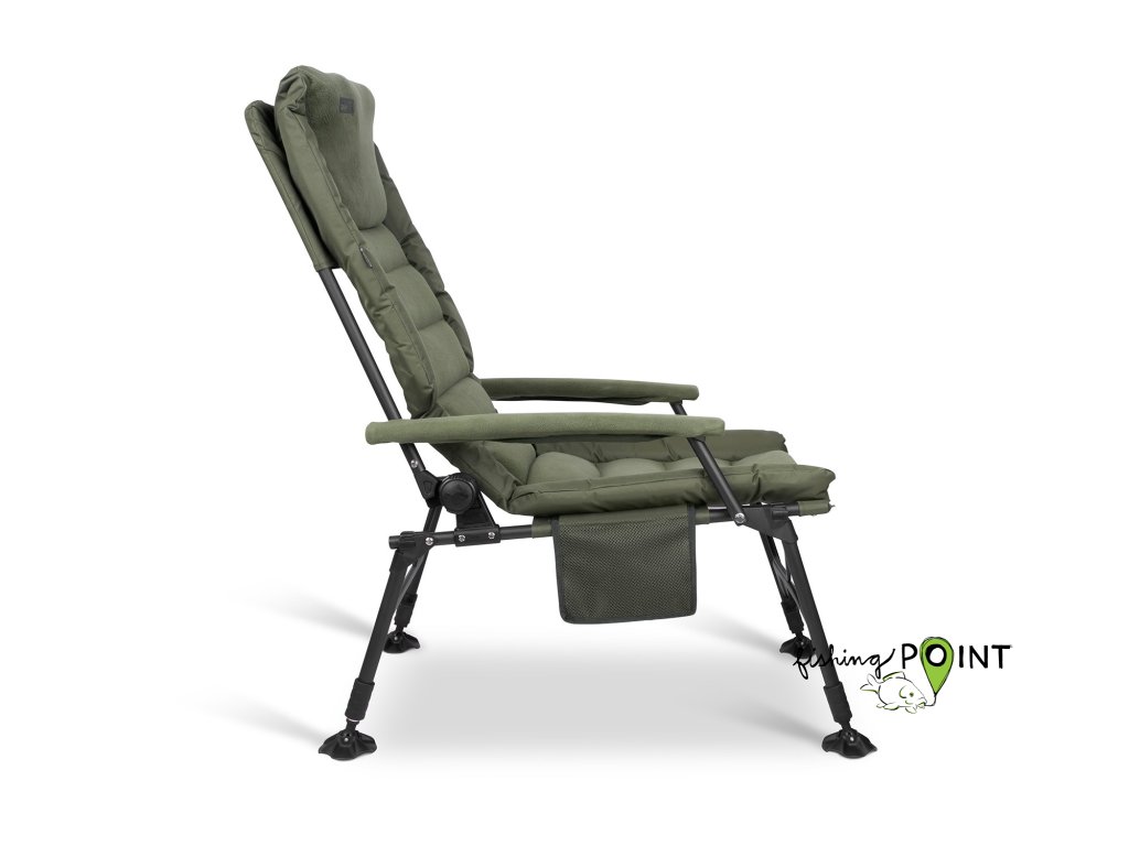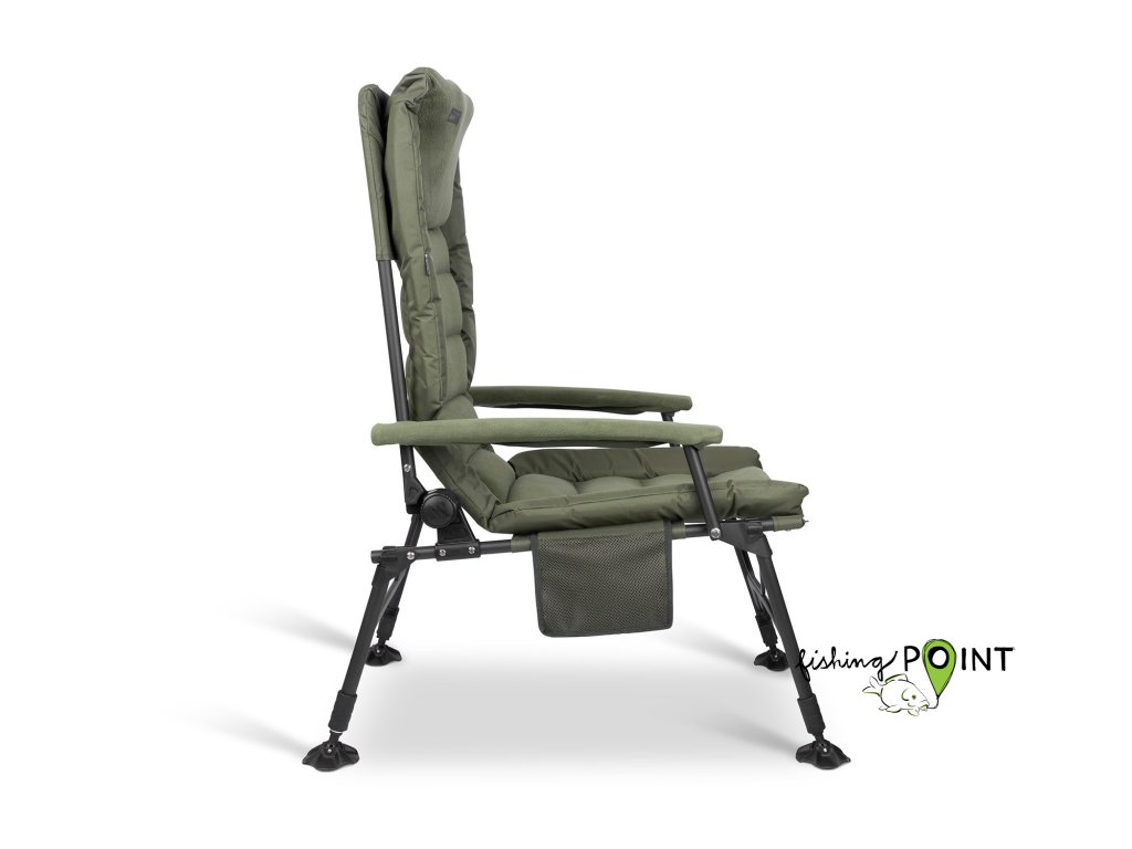 Křeslo Bank-Tek High Back Recliner Chair bylo navrženo pro maximální pohodlí, odolnost a praktičnost. Vyznačuje se robustním, ale lehkým rámem, sedací plochou s vysokou pěnovou matrací. Vícebodový sklápěcí systém umožňuje nastavení křesla do ideální polohy. Mezi další funkce patří boční kapsa na obou stranách. Nové odpružené nastavitelné nohy Grip-Lok s nadměrně velkými patkami proti zaboření do bláta a polstrované kryty loketních opěrek. Posuňte své pohodlí u vody zase o level výš!Vlastnosti: • Vysoké opěradlo • Micro fleece matrace a polstrované potahy na područky • Vícebodový sklápěcí mechanismus • Vysokoprofilová opěrka hlavy pro maximální podporu krku • Odpružený mechanismus Grip-Lok pro snadné a bezpečné nastavení výšky • Dvě odnímatelné boční kapsy • Přepravní rozměry: 67 X 85 X 22 cm • Výška sedu: 40 – 52 cm • Šířka sedáku: 55 cm • Hloubka sedu: 55 cm • Výška zad (opěrky): 78 cm • Váha: 8,2 kg