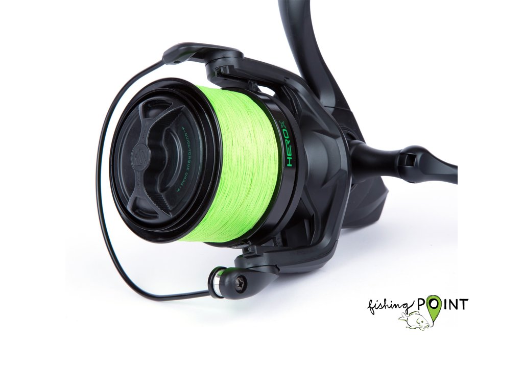Naviják HEROX Spod Reel je velmi stylový a robustní naviják navržený speciálně pro zakrmování. Dodává se s mělkou cívkou, na které je již navinuto 200m 30lb šňůry Hypa-Viz. Je vyroben ve vysoké kvalitě a má velmi hladký převod pomocí šnekové hřídele. Naše převody Heli Coil zajišťují ultraplochou pokládku vlasce pro perfektní odhoz. Tělo a rotor jsou vyrobeny z lehkého grafitu a obsahují pohyblivý vodič vlasce, který pomáhá předcházet jeho zamotání. Elegantní, matně černá povrchová úprava těla, černá CNC eloxovaná hliníková klička s tmavě dřevěnou rukojetí přímo vyzařuje kvalitu navijáků. Cívka je osazena dvěma vysoce odolnými pružinovými klipy na vlasec s E-Z vstupem, které jsou skvělou pomůckou pro přesné nahazování do dálky. Je vybaven velkou kličkou s pohodlnou rukojetí a při každé otáčce navine 1,1m šňůry, takže i zakrmování na velkou vzdálenost je s ním snadné. Při nahazování na dálku doporučujeme použít přídavný šokový návazec (50-60 lb).