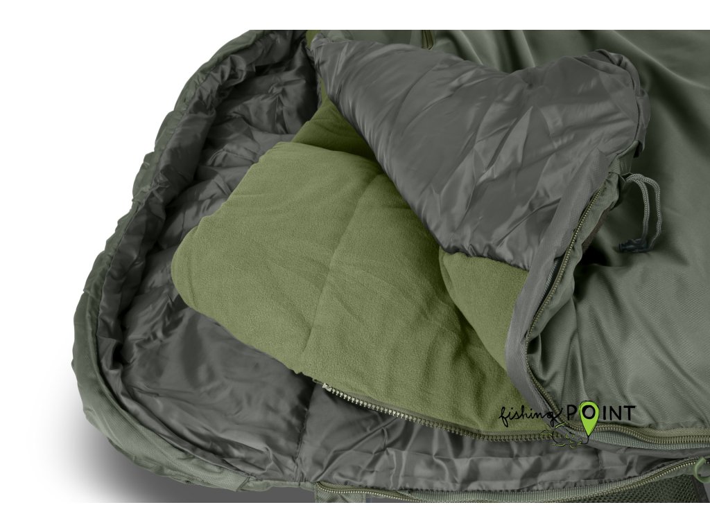Praktické kapsy na ruce a ochrana na krk poskytují dodatečné teplo a pohodlí. Systém elastických pásků s centrálním uchycením stabilizuje spací pytel na místě, což je důležité během rušných nocí. Odolné zipy velikosti 10 a speciální ochrany proti zaseknutí zvyšují funkčnost a životnost spacího pytle, čímž se stává ideálním společníkem na každé rybářské výpravě.