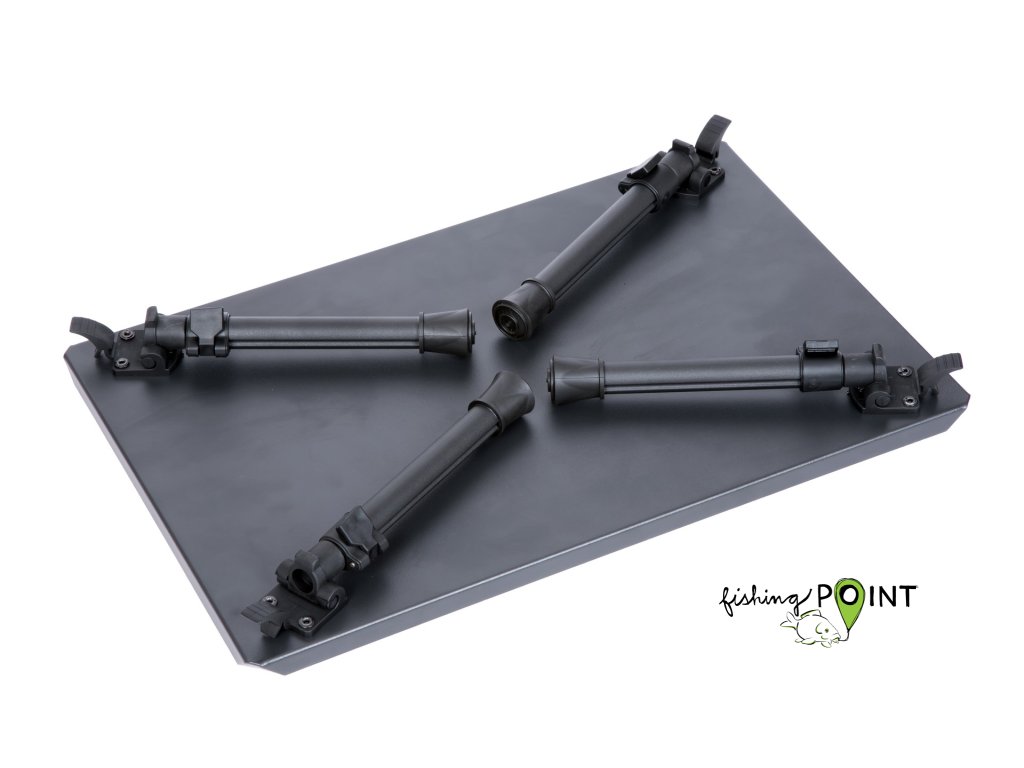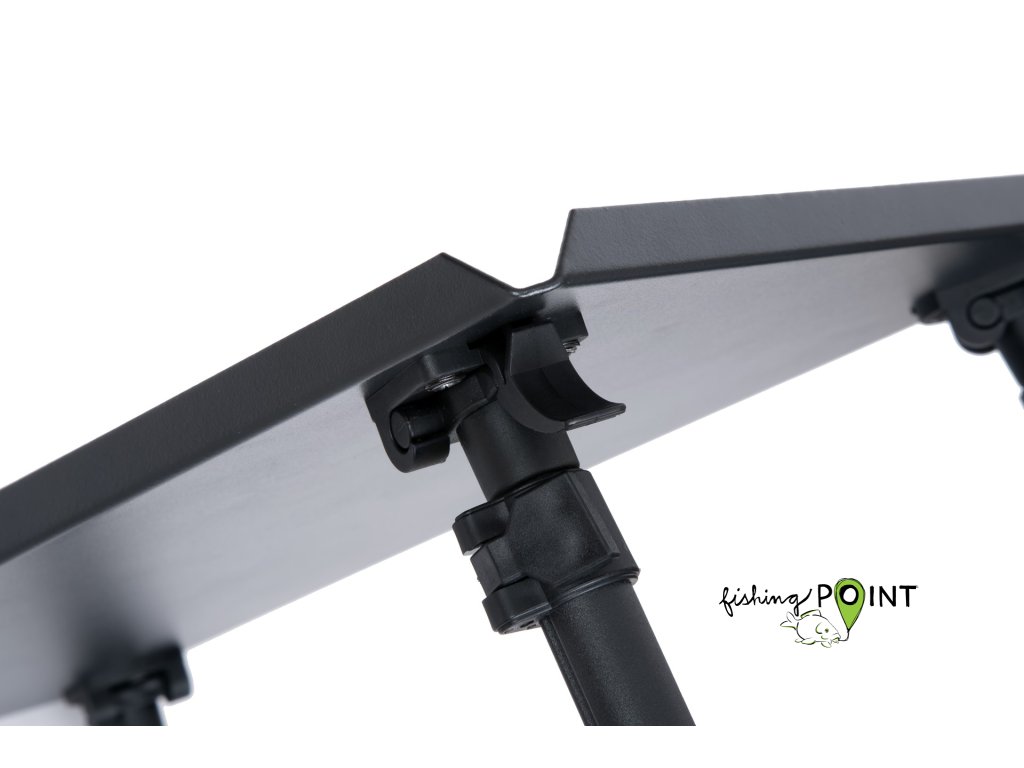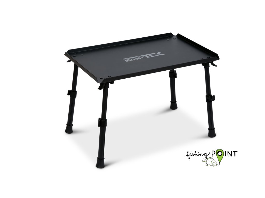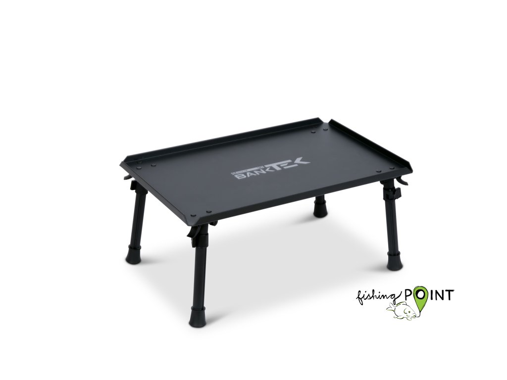 Pevný, lehký a velmi kompaktní stůl Bank-Tek Bivvy Table je vyroben z hliníku a váží pouze 900g. Má velkou stolní desku 47x30 cm s výškově nastavitelnými nohami 22-33 cm. Má ideální velikost pro noční stolek a má praktické zvýšené okraje. Pevné nastavitelné nohy se zámkem a protiskluzovými gumovými nožičkami. Snadno se sbalí naplocho a uloží do složeného křesla nebo postele.