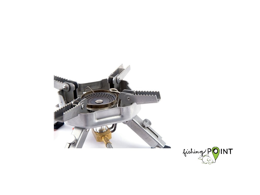 Vlastnosti:• Robustní superstabilní čtyřnohý skládací design• Plynule výškově nastavitelné nohy pro dokonalé vyrovnání• Technologie hořáku Heat-Kontrol™ pro široký rozsah teplot vaření• Plynové výstupy Low-Flow™ pro stabilní plamen při nižším nastavení teploty• Konstrukce hořáku Windscreen™• Předehřívací spirála pro efektivní spalování plynu• Samonivelační pogumované protiskluzové nožičky• Piezo zapalování, není potřeba zapalovač• Pevná konstrukce z nerezové oceli• Nerezová opletená hadice v prodloužené délce• Hlavní plynový konektor s dvojitým těsněním pro maximální spolehlivost• Součástí je nylonový úložný obal• Vhodné pro použití s butanovými/propanovými kartušemi se závitem EN417 ISO• Plynová kartuše není součástí balení• Výkon: 2800W• Rozměry - složený: 95 x 95 x 95 mm• Rozměry - rozložený: 145 x145 x 80-94 mm • Materiál: nerezová ocel, hliník, mosaz• Hmotnost: 570g