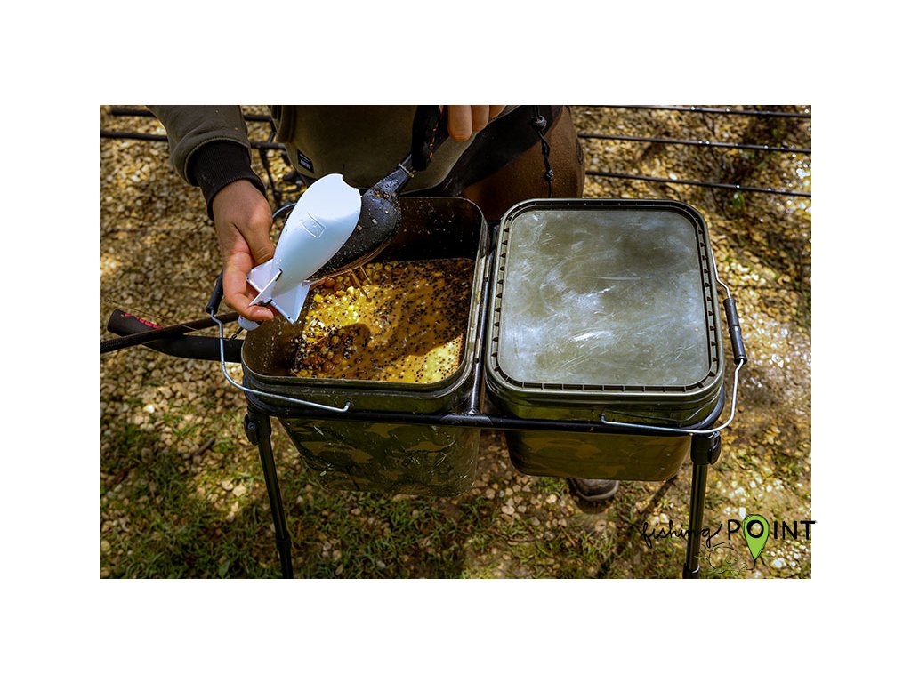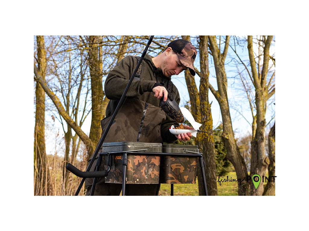 Kompaktní set „vše v jednom“, který drží dvě nádoby s návnadou v dokonalé výšce a šetří vaše záda, abyste mohli pohodlně plnit rakety Spomb™ nebo Fox Impact Spod™Rychlé postavení pomocí systému Cam Lock