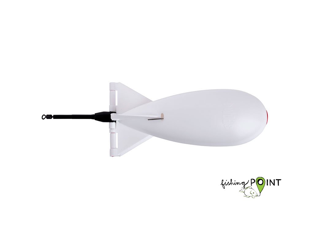 Speciální model raket Spomb pro hod do ještě větších dálek!Aerodynamický tvar této rakety umožňuje dosahovat vzdáleností až přes 150m. Díky tomu můžete dostat návnadu tak daleko jako nikdy předtím. Do rakety můžete dát jakékoli krmení. Po dopadu na hladinu se raketa celá otevře a okamžitě uvolní návnadu. Nezbytná pomůcka tam, kde nemůžete použít k vnadění loď.Velikost Spombu mezi Midi a LargeZabudovaný plovákDoporučení: Raketu skladujte vždy zavřenou a zagumičkovanou. Když otočíte přední tlačítko o 180°, získáte silnější zámek.Doplňkové parametry