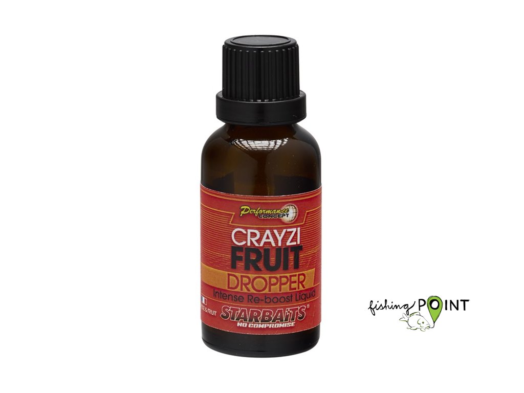 Dropper je koncentrovaná tekutina plná chuti a aromatu. Vzniká destilováním přírodních výtažků. Díky své menší hustotě, než voda se velice rychle šíří. Dropper slouží pro ochucení a aromatizování neutrálních Pop-up nástrah, nástrah na Zig Rig nebo partiklu. Díky své vysoké koncentraci stačí jen pár kapek pro vytvoření své vlastní unikátní nástrahy. Příchuť Crayzi Fruit (rak a ovoce)Doplňkové parametry