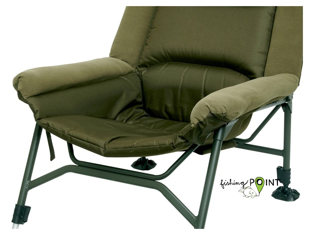 Velké a vysoké pohodlné křeslo s masivním polstrováním pro dokonalý komfort. Systém rychlého složení, silné polstrování s fleecovými prvky pro vyšší tepelný komfort i v chladných dnech. Pevná a odolná tkanina, ergonomický tvar sedáku a opěradla. Teleskopické nohy s pevnou aretací a extra širokými patkami proti zapadání. Bezpečnostní klipy na nohy spolehlivě drží křesílko v rozloženém stavu.Šířka sedáku 42 cm