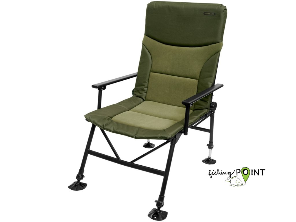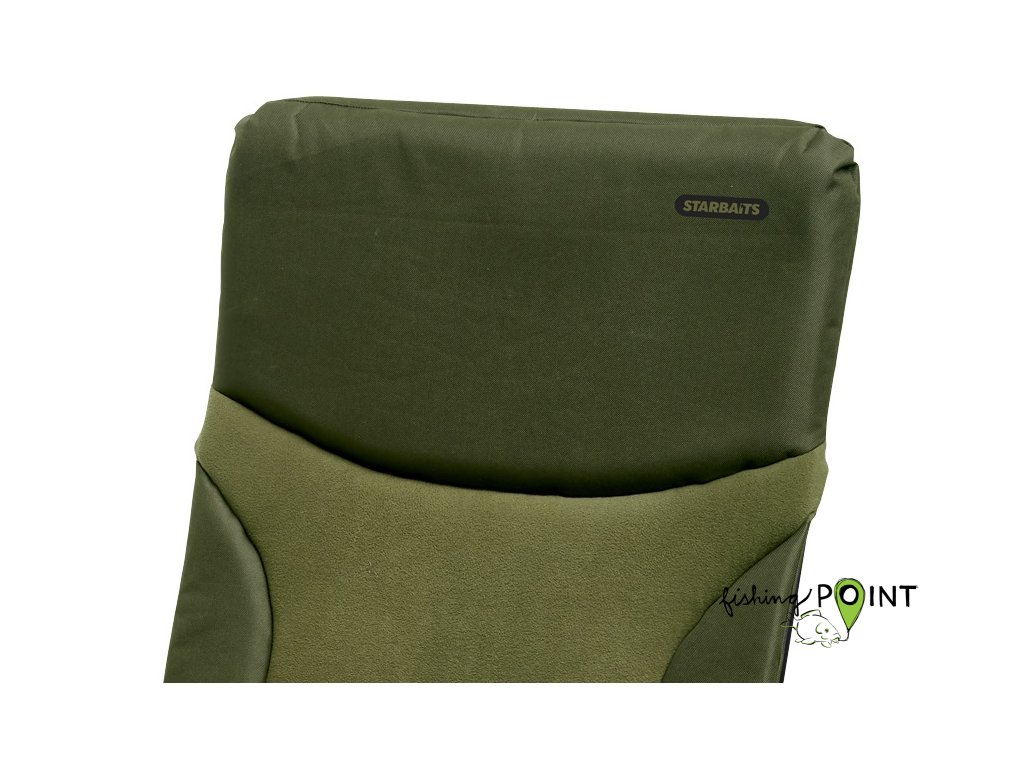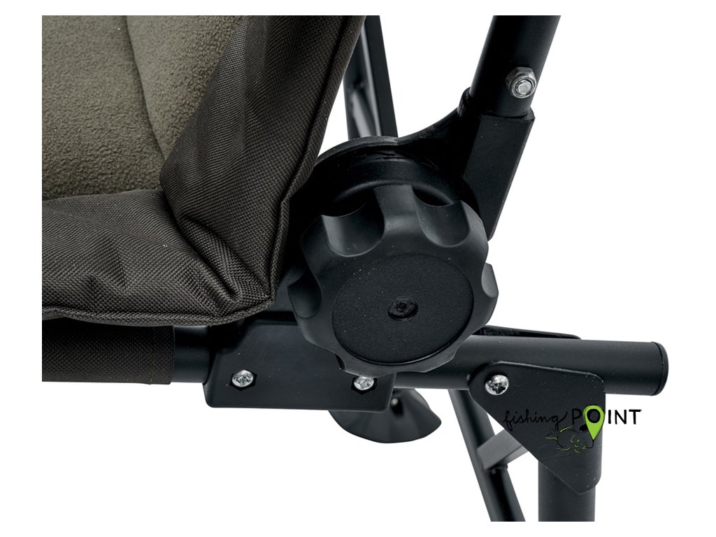 Nastavitelné nohy s širokými patkami proti zapadání zabezpečují pohodlnou možnost umístění v nerovném terénu. Široké opěrky na ruce přispívají k ještě většímu komfortu při sezení. Na horní straně opěradla je integrované zesílené polstrování jako opěrka hlavy. Polohu opěradla je možné nastavit díky pevnému kloubu.