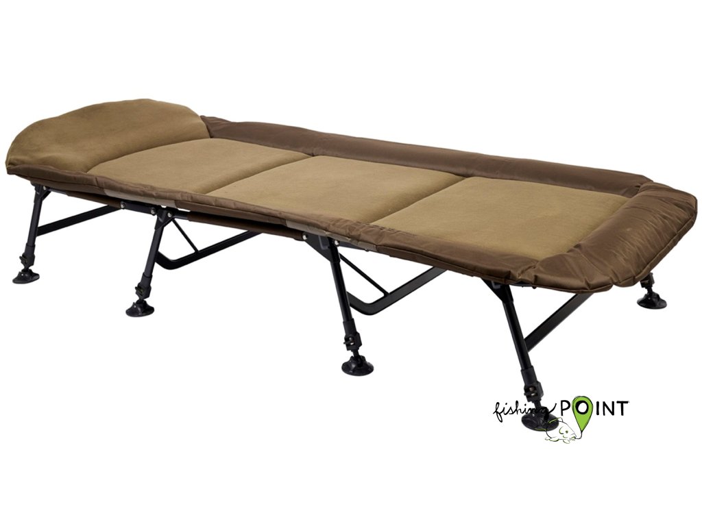 Lehké lehátko s pevnou konstrukcí vyrobenou z leteckého hliníku. Velice pevné a odolné, ale přitom ultra lehké! Matrace je silně polstrovaná a obsahuje termální vrstvu. Spací středová část s hřejivým fleecem na povrchu je vypolstrovaná pěnou nejvyšší kvality. Ergonomický integrovaný polštář pod hlavou. Povrchová tkanina je velice odolná. Matrace není k lehátku připevněna gumami, ale napevno. Díky tomu je spánek pohodlnější, a i při dlouhodobém užívání nedojde k proležení lehátka. Lehátko neobsahuje kloub a je tedy možné spát zcela v rovině. Výšku pod hlavou lze regulovat vysunutím nožiček. Lehátko má 8 teleskopických noh s širokými patkami proti zapadání pro jeho maximální stabilitu a komfort pro spaní.Parametry: