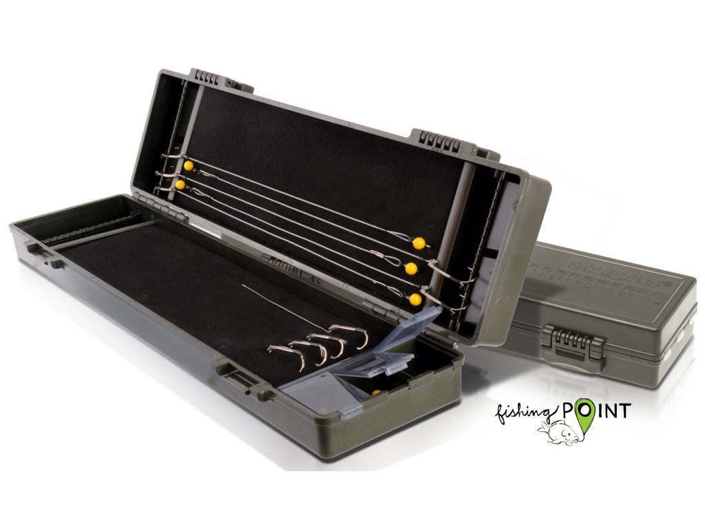 Praktické pouzdro na uschování velkého množství návazců různé délky. Součástí balení jsou i špendlíky pro jejich uchycení. Rozměry šxdxv 9x34x5 cm.