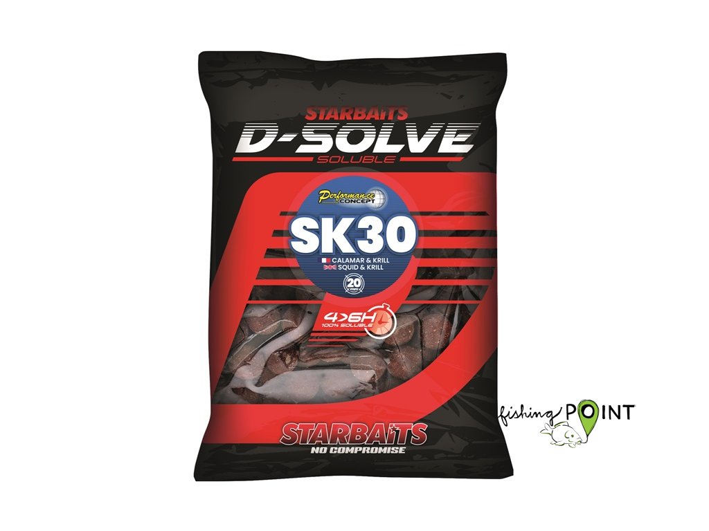 SK30 (oliheň a krill)Všechny receptury série CONCEPT obsahují čistě přírodní látky bez použití chemických aromat, barviv či jiných umělých ingrediencí. Jsou vyvinuté zejména na lov velkých kaprů.D-SOLVE rychle rozpustné boilies obsahuje stejné komponenty a při jeho výrobě jsou uplatněná stejná kritéria kvality, jako u našich prémiových řad boilies CONCEPT a PROBIOTIC. Rozpustné boilies D-SOLVE se ve vodě rychle rozpouští a uvolňuje částice. Doba rozpustnosti je cca 4-6 hodin. Doba rozpouštění se liší podle teploty vody a aktivity ryb. Snadná rozpustnost a vysoká atraktivita vám umožní rychle přilákat kapry a zároveň je udržet na krmném místě po dlouhou dobu. Skvělá volba pro závodní rybolov nebo rychlé vycházky k vodě, kdy je potřeba kapry rychle nalákat na zakrmené místo.