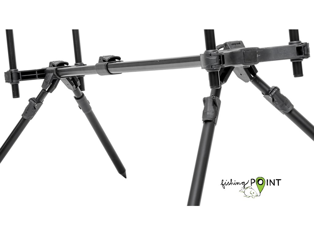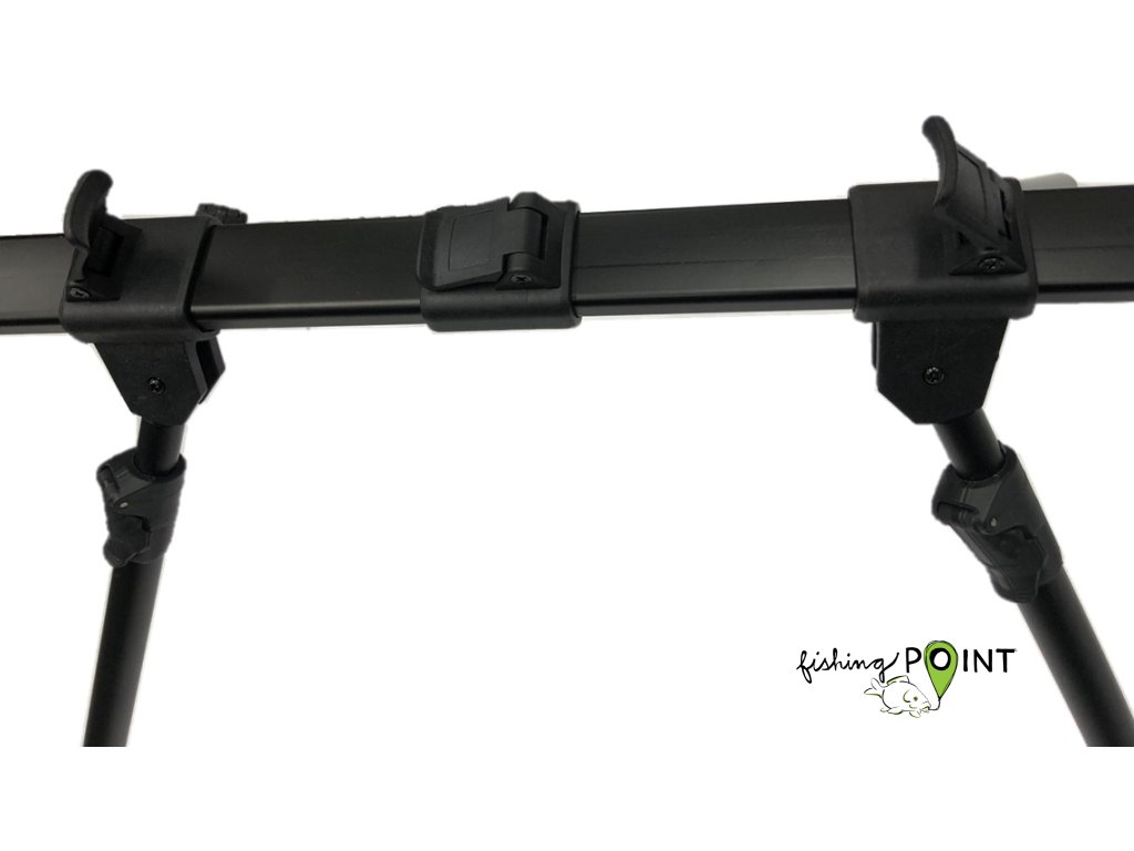 Stabilní a pevný stojan pro vaše pruty. Snadné rozložení a složení. 4 výškově nastavitelné teleskopické nohy s možností posunu po hlavní středové konstrukci pro ideální nastavení sklonu prutů a přizpůsobení se nerovnému terénu. Výškově nastavitelné hrazdy se snadným systémem skládání, nastavitelná délka stojanu. Stojan je vyroben z odlehčené, ale přesto velmi pevné slitiny. Dodáváno s transportním obalem.Rozměr ve sbaleném stavu 95x33 cm, délka stojanu 93-110 cm, výška 65/85 cm, výsuv hrazd 45/60 cm, délka hrazd 56 a 69 cm, délka nohou 30/50 cm a 60/108 cm, váha 1800
