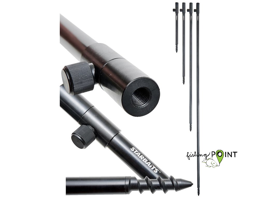 Pevné zavrtávací vidličky v černém matném designu. Velká pojistná matice, kterou nelze ztratit, pro pohodlnou aretaci. Pevný a odolný materiál. Horní univerzální závit na signalizátory, hrazdu, držák prutu atd. Průměr 16 mm.