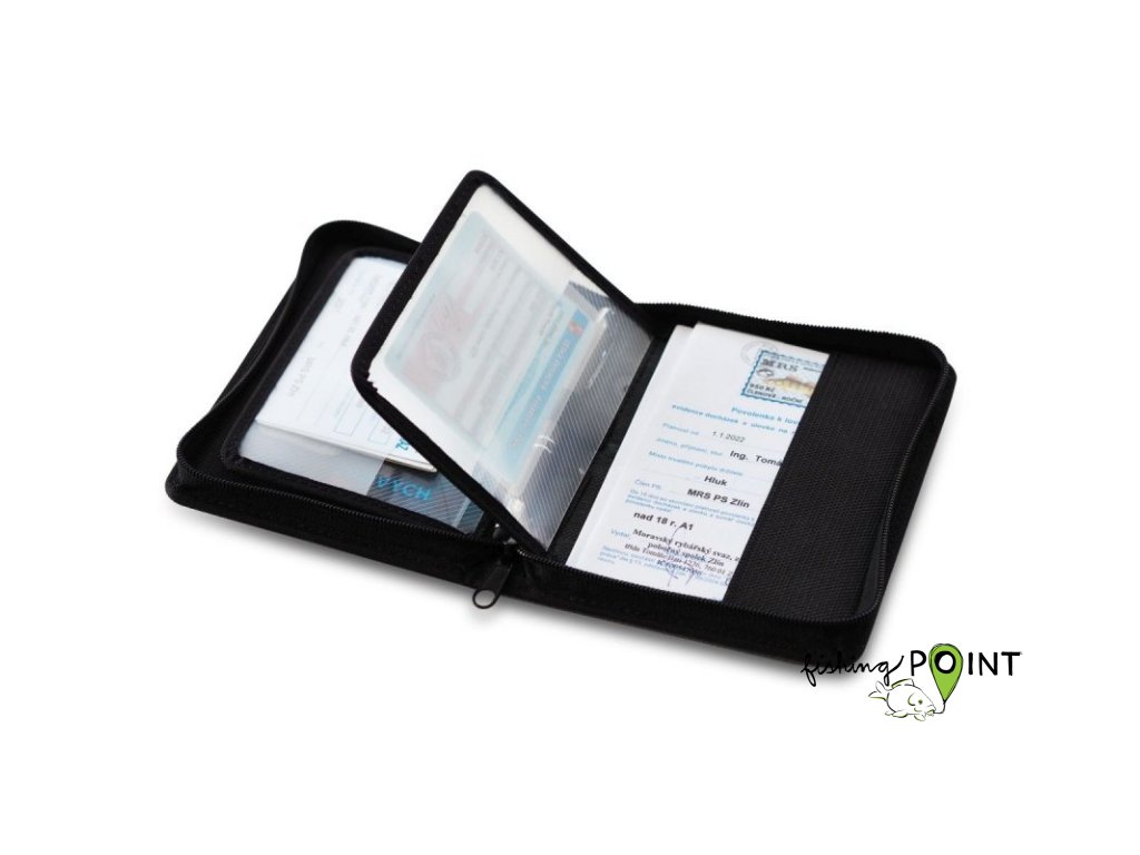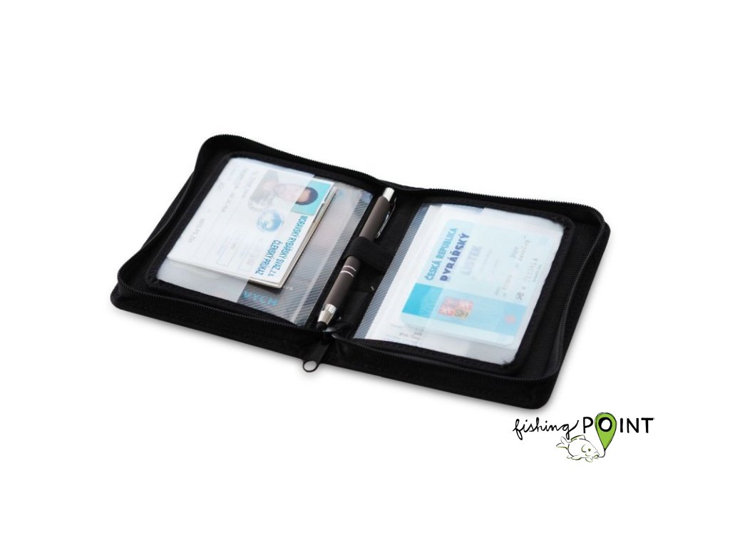 Pouzdro License Wallet ID Camo, které udrží Vaše rybářské doklady v bezpečí a suchu. To vše na jednom místě!Po obou stranách pouzdra se nacházejí kapsičky pro vložení dokladů nebo rybářského řádu. Uprostřed pouzdra jsou dvě plastové přihrádky pro vložení členského průkazu, rybářského lístku, příručního kalendáře, sumáře a jiných drobných věcí. A nezapomněli jsme ani na gumový držák na pero. To vše je doplněno kvalitním zipem