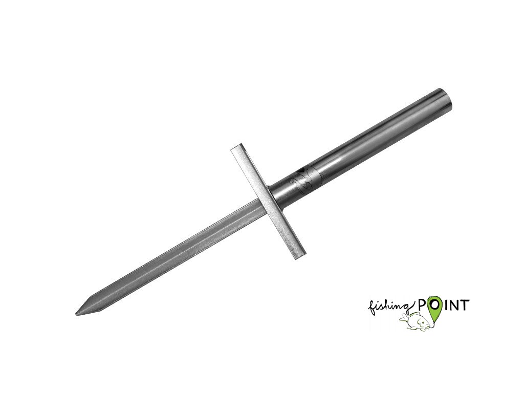 Extrémně masivní, celopozinkovaný sumcový stojan Delphin Hammer vás zaujme nejen svou enormní silou, ale i praktickým provedením. Základem je silná silnostěnná trubka s vnitřním průměrem 42mm, což umožňuje vložení a následné vytažení i těch nejhrubších rukojetí sumcařských prutů. Stojan je možné ukotvit do země dvěma způsoby. Prvním je kotvení pomocí ramen, které jsou po obou stranách stojanu. To umožňuje rovnoměrně rozložit vyvíjenou sílu, což je nespornou výhodou oproti stojanu s jedním ramenem. Druhou možností ukotvení jsou přesně mířené údery kladiva na trojúhelník ve vrchní části stojanu. Trojúhelník je tvořen L-profilem ze dvou stran a trubkou ze strany třetí. Spojení je zesílené svárem. Při použití kladiva doporučujeme trojúhelník překrýt kusem dřeva. Díky hrotovité spodní části L profilu dostanete stojan i do té nejodolnější země. Dlouhou životnost zajistí úpravy celého stojanu pomocí zinkování. Delphin HAMMER je kompletně vyráběn na Slovensku!