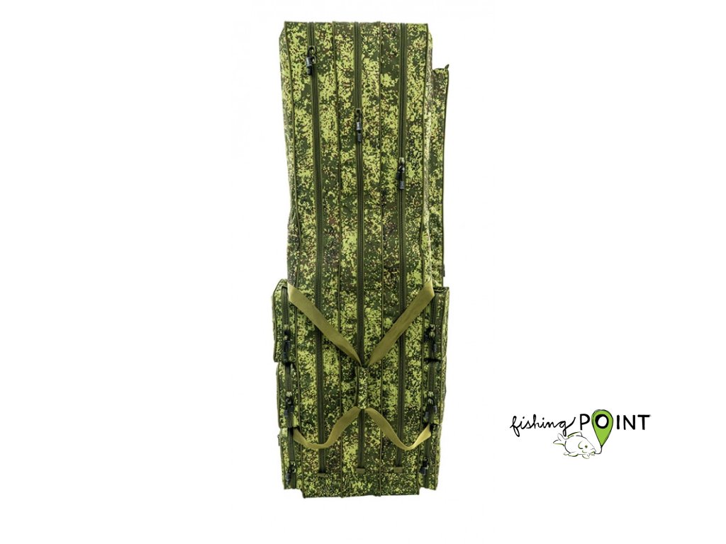 Zcela nový obal na pruty ve vzoru camo pojme téměř vše potřebné na vaši rybářskou výpravu. Šířka komory je 11cm, výška 21cm se v 80cm zužuje na 11cm. To vytváří dostatečný prostor na naviják nasazený na prutu. Na jedné straně je dlouhá kapsa po celé délce obalu 125x9x5cm (u kratších variant je kapsa dlouhá jako obal) na podběrák a nad ní jsou tři kapsy 20x10x5cm na drobnosti, nebo na krabičky Versus typu VS506, VS706 a VS806. Na druhé straně jsou tři kapsy o rozměru 20x20x5cm do kterých pasují krabičky typu VS3010NDM,VS3010ND a VS3010NS a jedna kapsa nepromokavá na doklady. Na popruzích jsou čtyři užitečná oka na zavěšení různých potřeb. Všude jsou použity velké pevné zipy s dvěma jezdci, které mají místo kovové rukojeti provázek s plastovým gripem. Obal je ušit z pevného 600D Oxford Nylon materiálu, který je velmi pevný a odolný.Doplňkové parametry