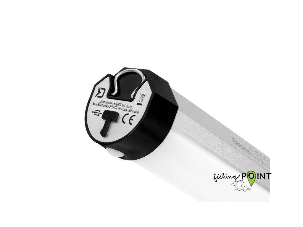 Kromě něj k světlu dostanete také napájecí kabel a dvě závěsná poutka na světlo i ovladač. Upevnění produktu je elegantně vyřešeno pomocí magnetů, umístěných přímo na světle a jedním plochým kovovým protikusem. Za pomoci těchto prvků lze Lightbar snadno umístit kdekoliv na bivak, či jiný rybářský přístřešek a bude vždy spolehlivě držet na svém místě.