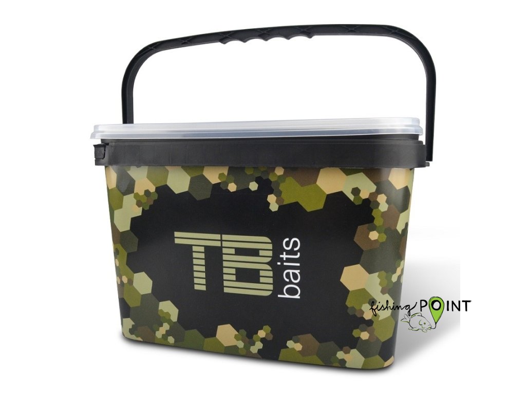 Plastový kbelík obdélníkového tvaru v designu Hexa Camo od značky TB Baits.Tyto kbelíky můžete použít k transportu libovolných návnad a nástrah. Kbelík disponuje znovu uzavíratelným průhledným víkem a praktickou a odolnou rukojetí. Objem: 5 l.