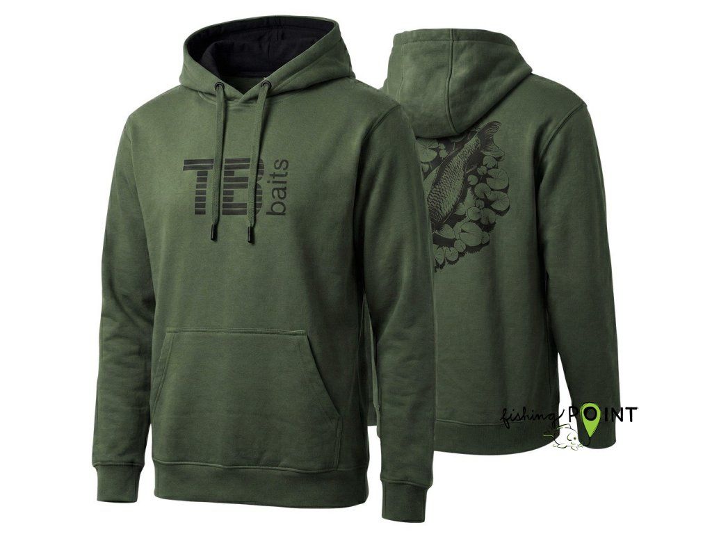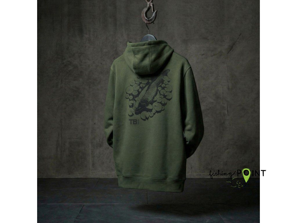 Kvalitní unisex mikina TB Baits v edici Hidden Carp v prémiové zelené barvě s výrazným motivem na zádech.