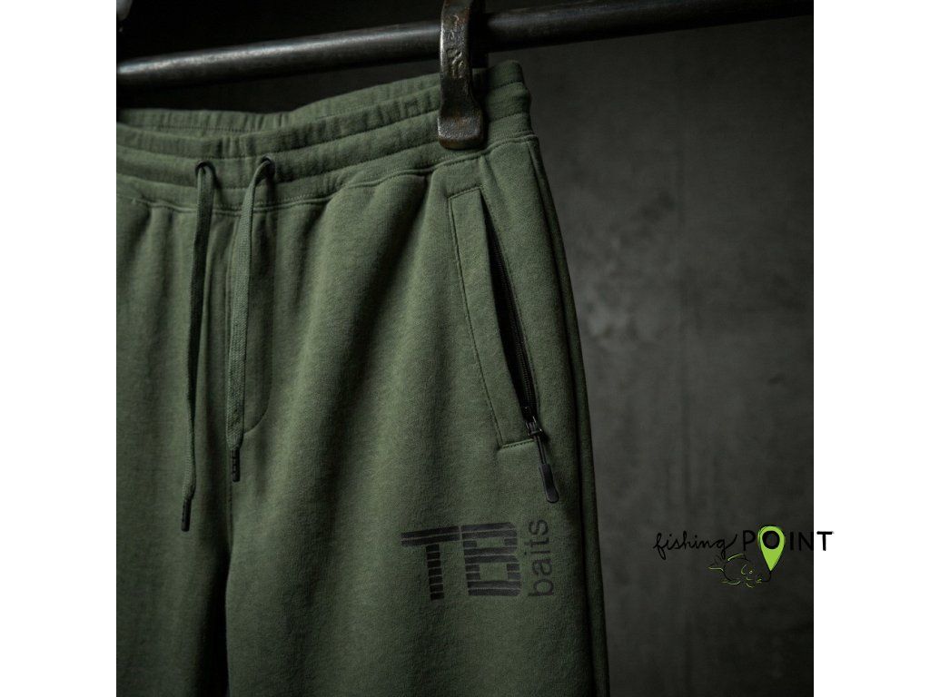 Kvalitní unisex tepláky TB Baits jako doplnění edice Hidden Carp v prémiové zelené barvě s decentním logem TB Baits.