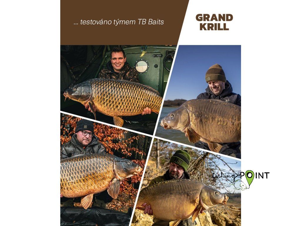 Název Grand Krill není náhoda. Krill je zde obsažen hned v několika složkách, jedná se krillovou moučku, krillovou tekutou potravu a prémiovou krillovou esenci. Tyto krillové složky jsou precizně nakombinovány s dalšími extrakty a tekutými potravami z mořských živočichů. Významnou roli v této řadě hraje i výtažek z mořských řas, který významně podtrhává silnou vůni mořských živočichů. Nechybí ani ověřené chuťové stimulanty, které používáme ve všech našich produktech, na které kapři neuvěřitelně skvěle reagují. Během testování se našemu týmu podařilo ulovit nespočet nádherných ryb na svazových vodách s několika kapry přesahujícími 25 kg. Boilie bylo testováno i během zimního období, a i ve studené vodě dosahovalo naprosto fantastických výsledků.