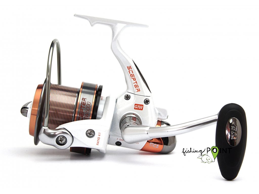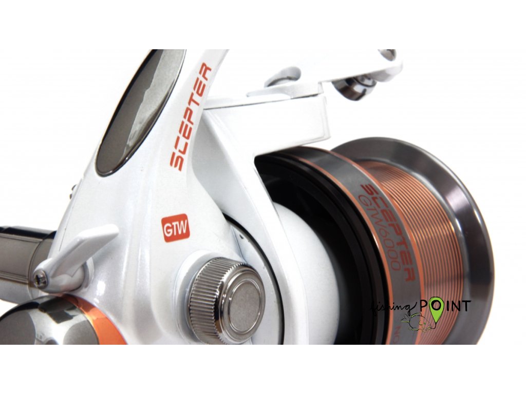 Scepter GTW je vhodný na daleké hody, cívka má kapacitu 0,30 mm / 430 m . Samozřejmě cívka je kovová .