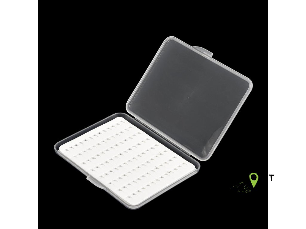 Extra tenká muškařská krabička na mušky s kapacitou až 104 ks. Uložení mušek je řešeno formou zářezů v pěně. Krabička je vhodná pro tungsteny, perdigony a české nymfy. Krabička je transparentní s bílou pěnovou výplní. Rozměry12,5 x 10,5 x 1,3 cmDoplňkové parametry