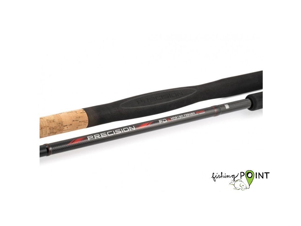Feederový prut PRECISION FDX MASTER 3,6m, 90g – S.H.M.R. karbon, korková rukojeť, 3 špičky. Ideální pro univerzální lov na řekách i jezerech.Dnešní moderní rybolov je zcela odkázán na kvalitu a komplexnost jednotlivých komponentů rybářského vybavení. Spolehlivost a účelovost je dnes brána jako hlavní atribut při výběru rybářských prutů. Modelová řada prutů PRECISION se rozrůstá o zcela specifický model nesoucí trefné označení FDX MASTER FEEDER. U této řady byla velmi citlivě nakombinována délka prutu v návaznosti na odhozovou gramáž, kdy výsledkem jsou 2 typy modelů s poměrně všestranným využitím. V blanku je použit kvalitní S.H.M.R. carbon, který se vyznačuje vysokým pevnostním koeficientem. Jednotlivé vrstvy jsou předimenzovány molekulární restrukturalizací jádra, což zaručuje blanku vysokou dynamičnost a progresivitu akce a poměrně značnou silovou rezervu pro boj s větší rybou. Pruty byly navrženy pro lov na velkých jezerech, řekách a kanálech, kde je zapotřebí se vyrovnávat s rychle se měnícími podmínkami. Blank je osazen kvalitními SiC očky konstrukčně řešenými tak, aby se zvýšila jejich prostupnost a dvoupatkově uchycenými u prvního a druhého dílu . Rukojeť je vyrobena z přírodního korku s elegantním obrendováním názvu celé modelové řady a je ergonomicky ukončena. Šroubové sedlo navijáku je integrováno do rukojeti a zesíleno o gumový konektor zajišťující pevnost uchycení. Eliminuje se tak jakékoliv uvolnění či pohyb navijáku. Horní část sedla je materiálově řešena kombinací korku a duplonu, což vyzdvihuje celkovou elegantnost modelu. Pruty jsou dodávány se 3 výměnnými špičkami s označením Light (sklolaminát), Medium (sklolaminát) a Heavy (carbon) a jsou barevně odlišené pro svou lepší identifikaci. Vzhledem ke své odhozové gramáži 90 – 100 g se tyto pruty řadí mezi tzv. medium heavy a heavy feederové s označením akce MH a H. Z našeho pohledu se jedná o velmi komplexní řadu prutů s všestranným využitím, kterou ocení zejména rybáři, kteří dosti často střídají lov na stojatých a tekoucích vodách.
