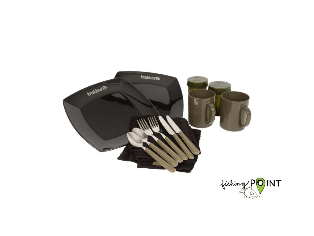 jídelní sada s kompletním jídelním vybavení pro dva rybáře