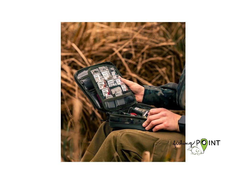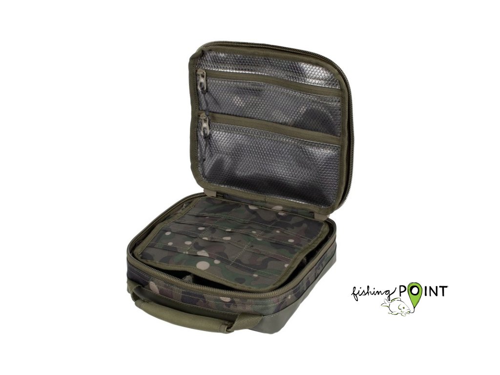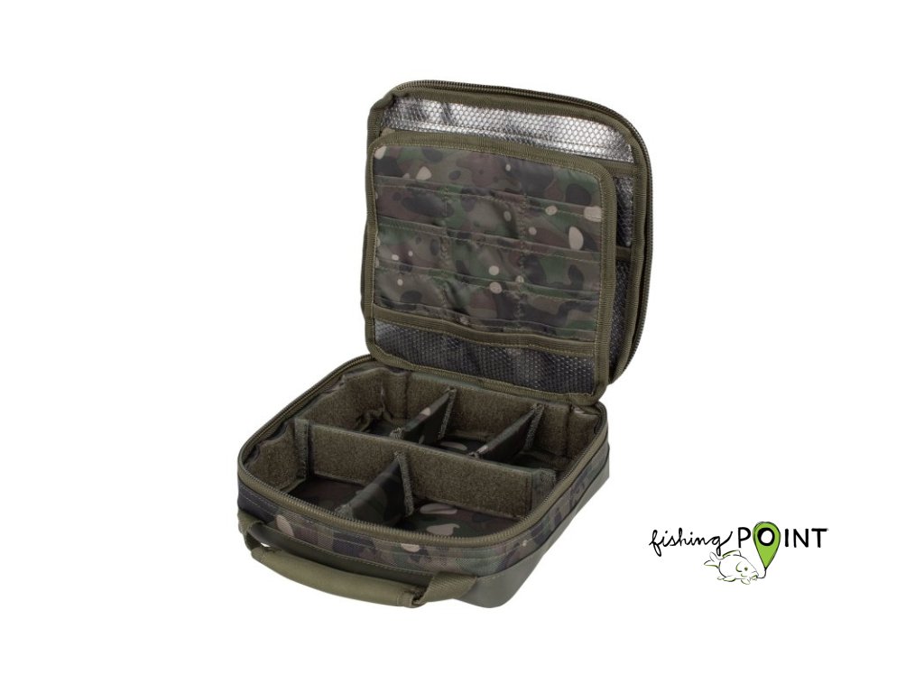 Penál určený k úhlednému a pohodlnému uložení rybářské bižuterie.NXC Tackle Bag nabízí přizpůsobitelný systém přihrádek a také velké množství kapes vhodných pro různé velikosti rybářských drobností. Tento přizpůsobitelný, velkokapacitní penál má pevnou, voděodolnou PVC základnu, vyztuženou neoprenovou rukojeť a dva zipy pro snadný přístup.