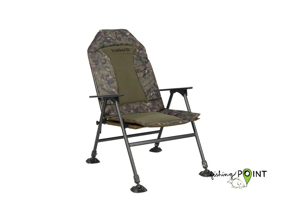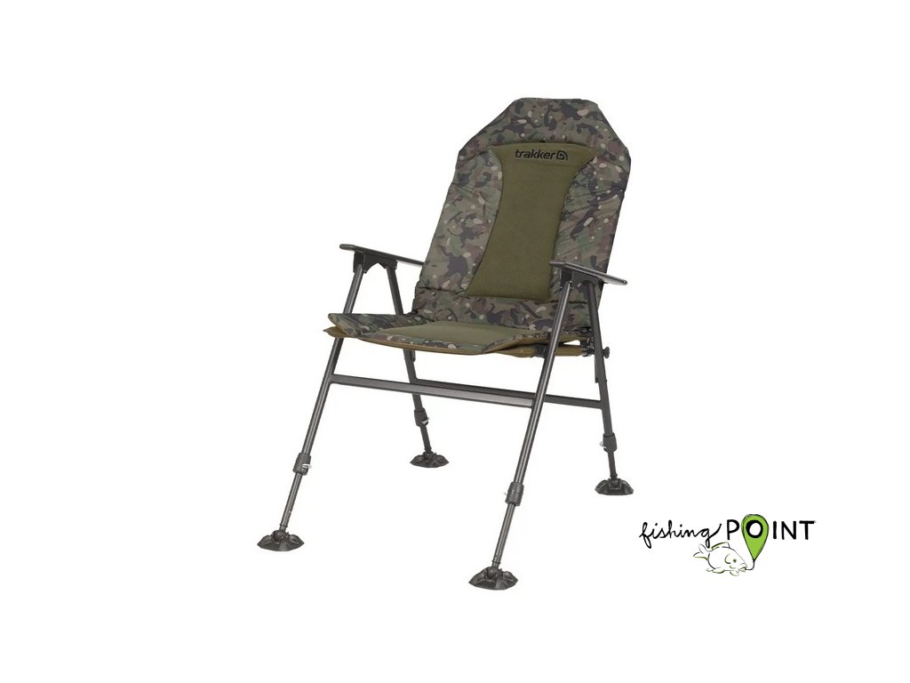 Křeslo je potaženo jedinečným camo designem Trakker, takže se v něm budete nejen super pohodlně cítit, ale také budete dobře vypadat.