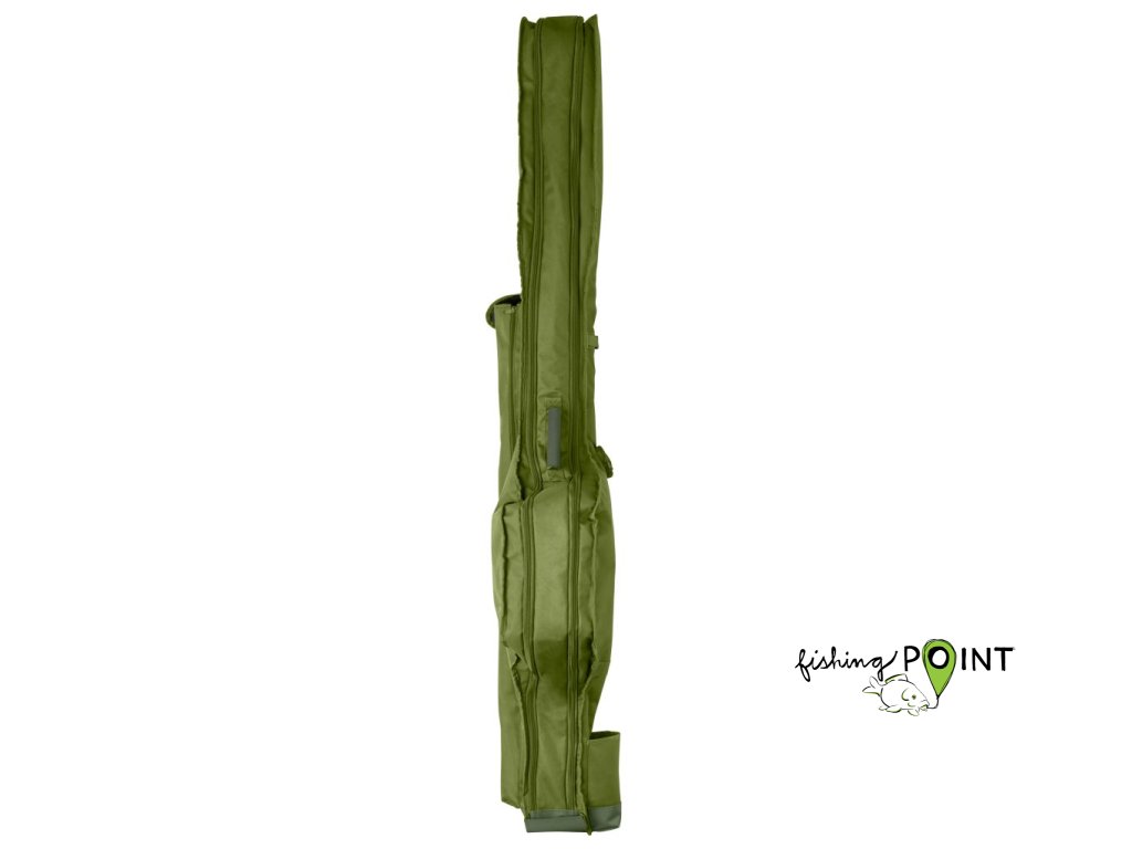 Polstrované pouzdro na 3 pruty (12ft nebo 13ft) s přehledem pojme big-pit navijáky a pruty s 50mm naváděcím očkem. Pásky na suchý zip drží pruty na jednom místě při přepravě. Obal je vyroben z 600D polyesteru v jemném odstínu olivově zelené. Zesílenou základnu lze snadno očistit od různých nečistot. Do prostorné vnější kapsy se vejde standardní vážící taška i ramena podběráku, tyč podběráku můžeme uložit k páteři obalu. Využít můžete také postranní úložní prostor, který je určen pro dva další jednotlivé obaly na pruty. Můžete tak tedy přenášet i 4–5 prutů. Malá kapsa u základny obalu je ideální pro uložení olova na konci výpravy. Vlastnosti produktu Navrženo pro přepravu až tří prutů i s 50mm naváděcím očkem a big-pit navijáky Vnější kapsa vhodná pro uložení vážící tašky a podběráku Kapsa na tyč podběráku v páteři obalu Malá postranní kapsa na olova Na stranu můžeme připevnit ještě dva další obaly na jeden prut, tak vytvoříme úložiště pro 4/5 prutů Vnitřní polstrování, které se postará o bezpečí všech prutů Pásky na suchý zip, kterými se zajistí pruty na místě pro bezpečnou přepravu Dvě ztužené EVA rukojeti Zesílená základna s odolným a snadno omyvatelným povrchem Technické parametry Rozměry: 13ft – 215cm 12ft – 200cm Materiál: 600D PolyesterDoplňkové parametry