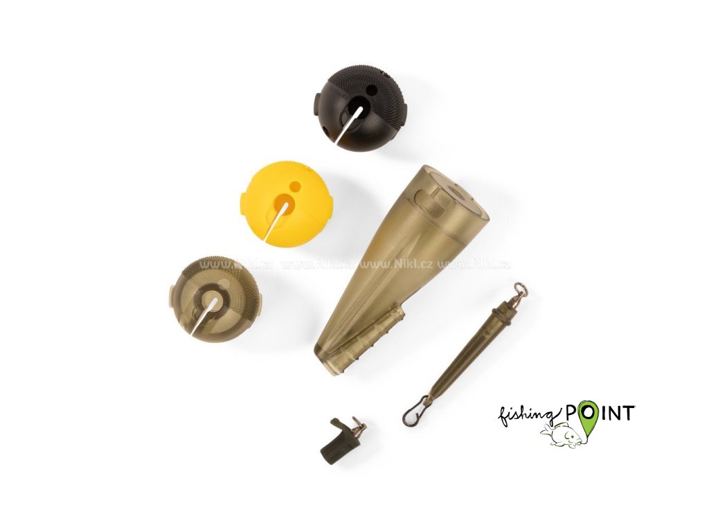 Obsah balení: 1× plovák, 1× dřík pro upevnění olova s ložiskovým obratlíkem, 1× zátka s ložiskovým obratlíkem, 3× uzavírací čepička (zelená – průsvitná, černá a svítivě žlutá) a 1× rychlovýměnná karabinka.