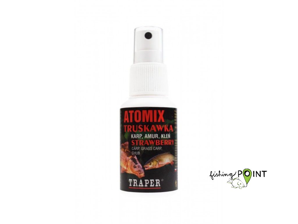 Spreje ATOMIX slouží k postřiku nástrahy na háček a tím může rybář v určitých situacích zatraktivnit nástrahu. Aplikuje se zejména v situacích, kdy ryby nepřijímají aktivně potravu. Stejně tak lze sprejem postříkat naplněné krmítko při lovu na položenou.Doplňkové parametry