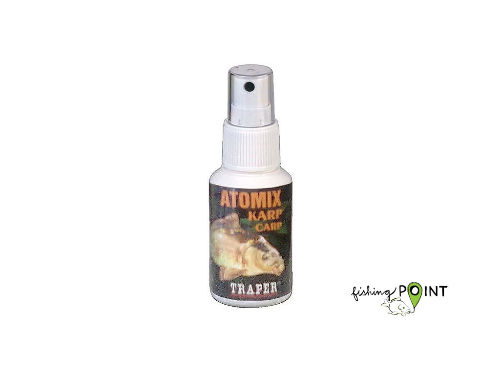 Spreje ATOMIX slouží k postřiku nástrahy na háček a tím může rybář v určitých situacích zatraktivnit nástrahu. Aplikuje se zejména v situacích, kdy ryby nepřijímají aktivně potravu. Stejně tak lze sprejem postříkat naplněné krmítko při lovu na položenou.Doplňkové parametry