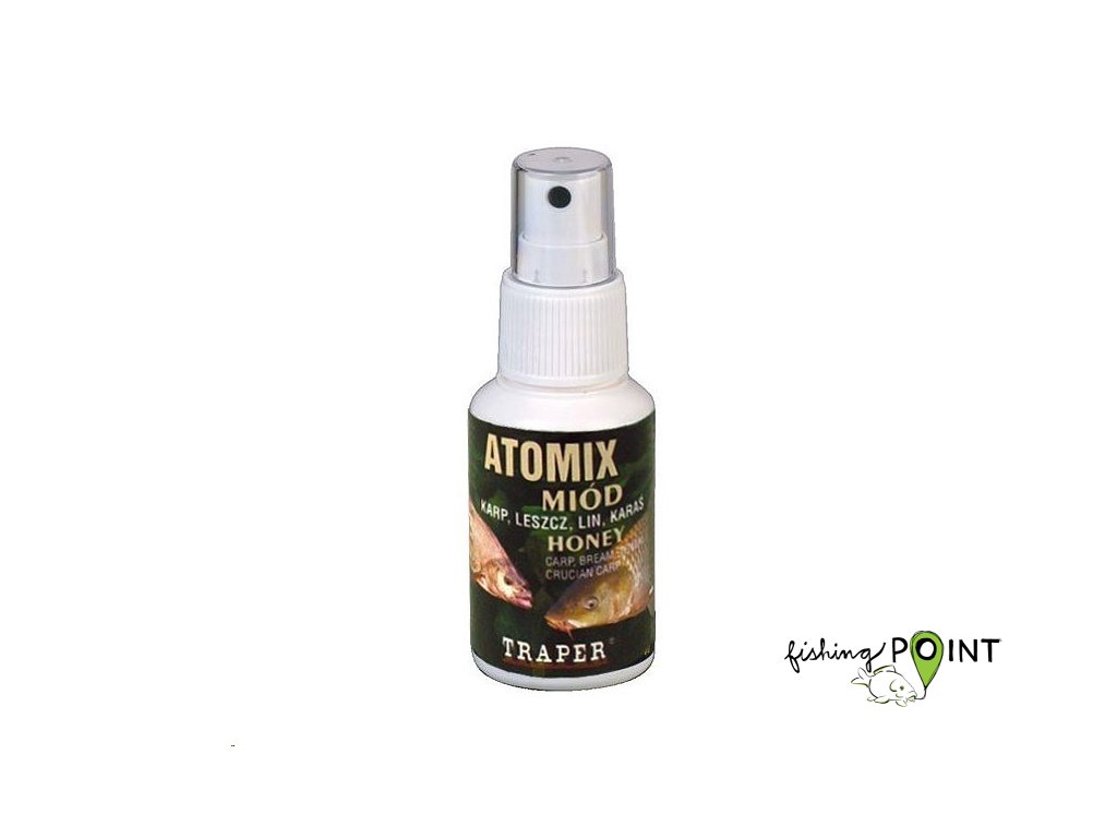Spreje ATOMIX slouží k postřiku nástrahy na háček a tím může rybář v určitých situacích zatraktivnit nástrahu. Aplikuje se zejména v situacích, kdy ryby nepřijímají aktivně potravu. Stejně tak lze sprejem postříkat naplněné krmítko při lovu na položenou.Doplňkové parametry