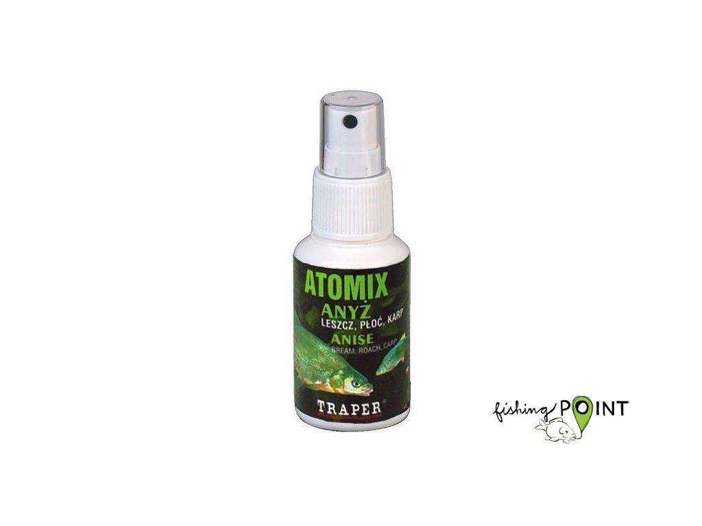 Spreje ATOMIX slouží k postřiku nástrahy na háček a tím může rybář v určitých situacích zatraktivnit nástrahu. Aplikuje se zejména v situacích, kdy ryby nepřijímají aktivně potravu. Stejně tak lze sprejem postříkat naplněné krmítko při lovu na položenou.Doplňkové parametry