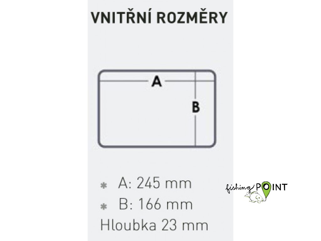 Krabička od firmy Versus4 variabilní přepážky. Materiál: Polypropylen, zámek ABS. Worm Proof.