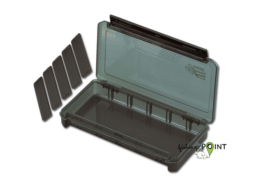 Krabička má 16 variabilních přepážek. Materiál: Polypropylen, zámek ABS. Worm Proof. Mikrožebrování dovoluje přenastavit přepážky tak, aby byl využit každý kousek prostoru. Rozměry 25,5 × 19 × 2,8 cm.