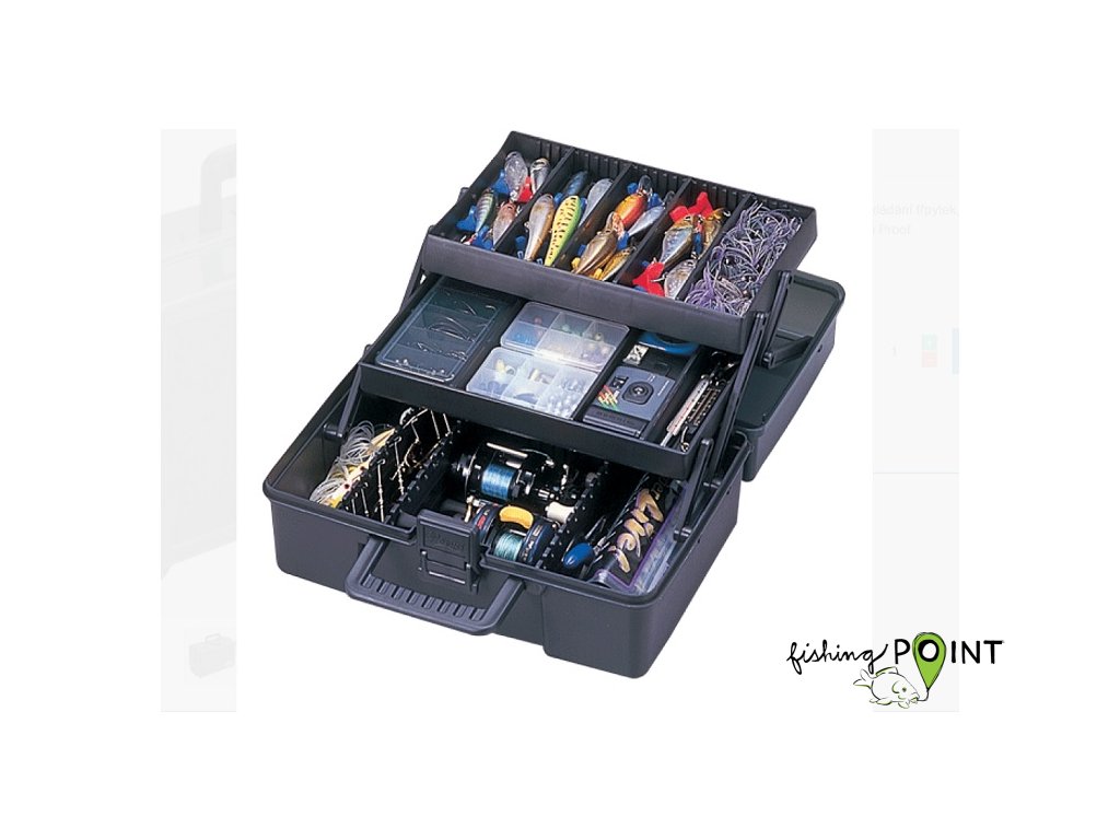 Dvě poličky, v hlavním prostoru jsou dvě příčky na ukládání třpytek, pilkrů a wobblerů. Materiál: Nárazuvzdorný kopolymer. Přihrádky Worm Proof.Rozměry