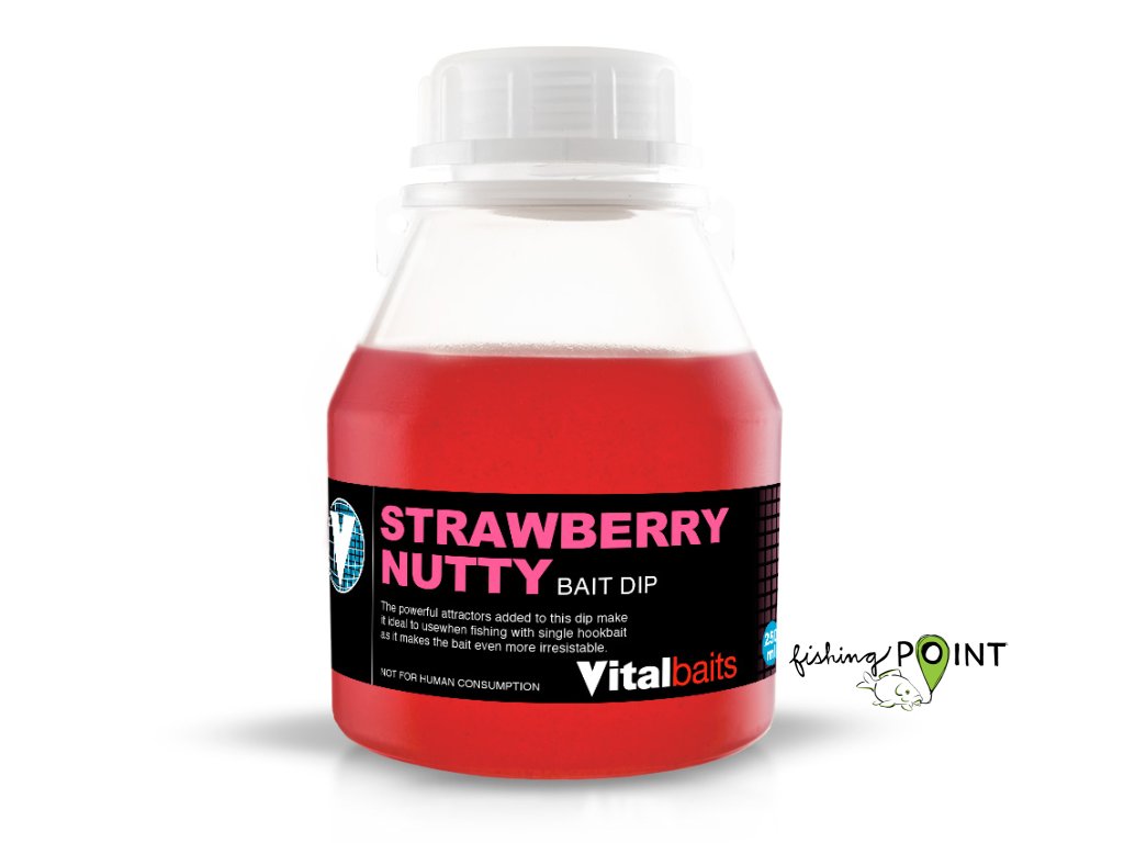 Sladký krémový dip vyrobený ze stejných základních ingrediencí, jaké jsou použity v boilies stejné řady Strawberry Nuts: tygří ořechy, glukóza, aditiva a jahodové aroma. To v souhrnu poskytuje perfektní kombinaci celoročního krémového dipu k polití vašeho boilies, spod mixu, krmení nebo pro dipování vašich návnad na háček pro maximální umocnění jejich atraktivity.Doplňkové parametry