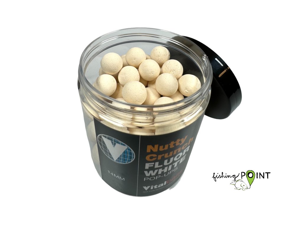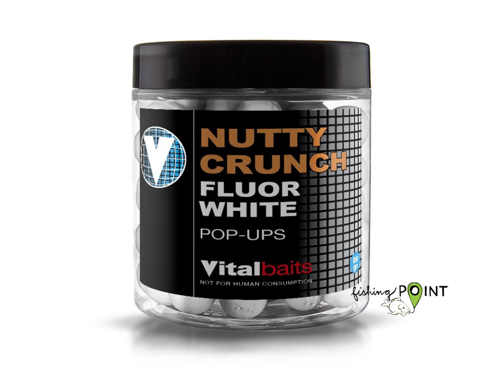 Pop-upy v zářivě bílé barvě doplňující řadu Nutty Crunch boilie. Tato bílá varianta byla společně se svítivě žlutou uvedena na trh, aby rozšířila nabídku těchto atraktivních pop-upů a umožnila tak větší výběr při volbě vhodné nástrahy. Směsi pro Pop-Up obsahují stejné atraktanty jako krmení stejné řady, ale v ještě větší míře. Vydrží plavat a uvolňovat neodolatelné aroma déle než 48 hodin.Doplňkové parametry