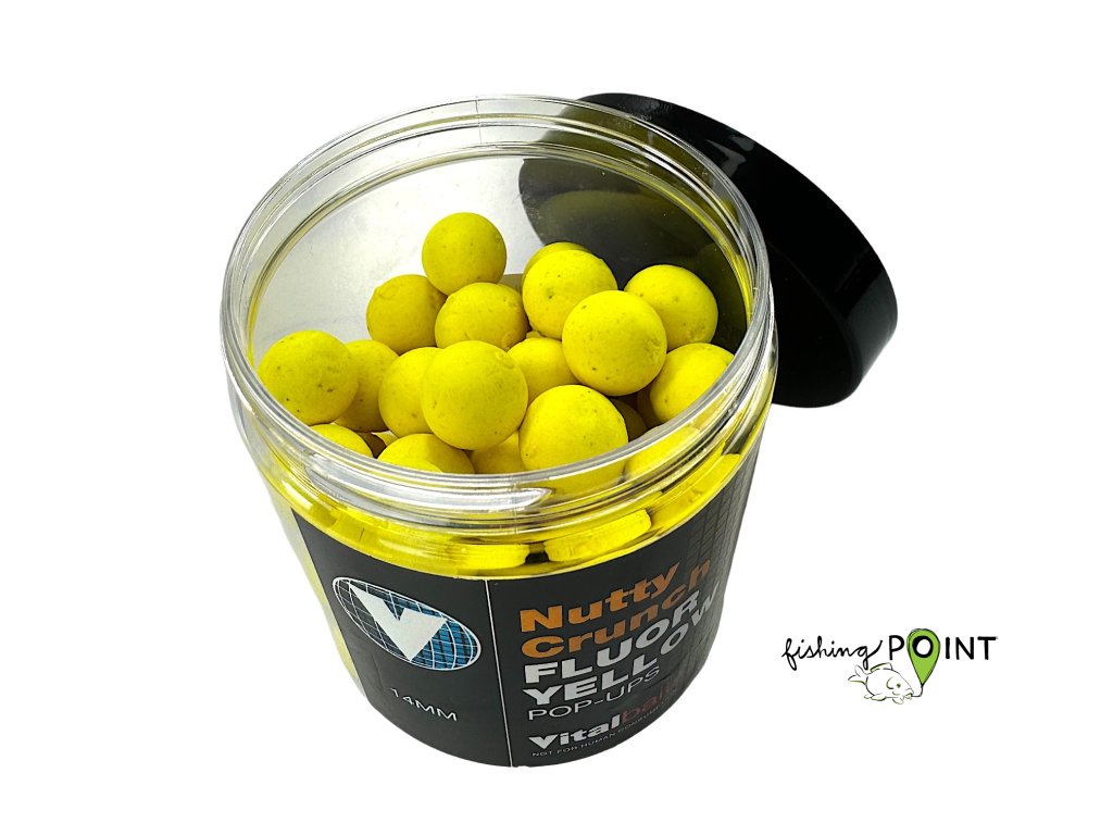 Pop-upy v zářivě žluté barvě doplňující řadu Nutty Crunch boilie. Tato žlutá varianta byla společně se svítivě bílou uvedena na trh, aby rozšířila nabídku těchto atraktivních pop-upů a umožnila tak větší výběr při volbě vhodné nástrahy. Směsi pro Pop-Up obsahují stejné atraktanty jako krmení stejné řady, ale v ještě větší míře. Vydrží plavat a uvolňovat neodolatelné aroma déle než 48 hodin.Doplňkové parametry